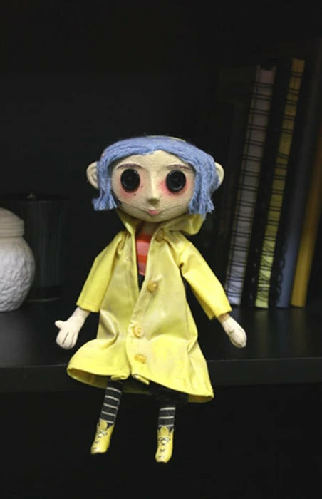 The folks at NECA have lovingly reproduced the doll as it is seen on the film, from the yarn hair and button eyes to the removable yellow raincoat. Measuring 10” tall, the doll has a hidden wire armature allowing you to poser her arms, legs and raincoat!