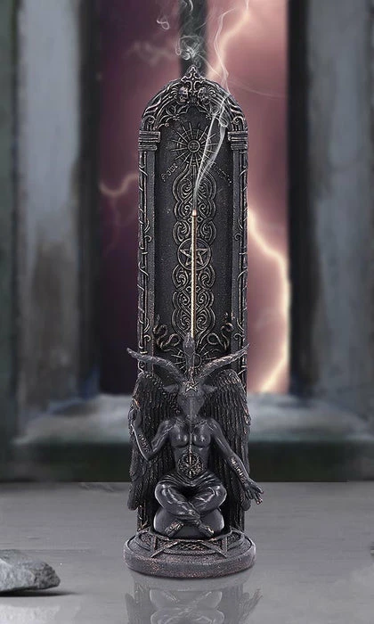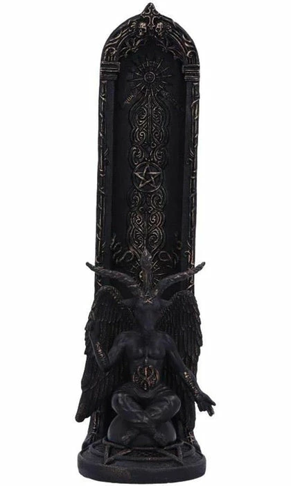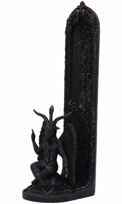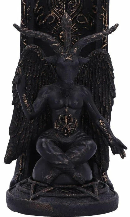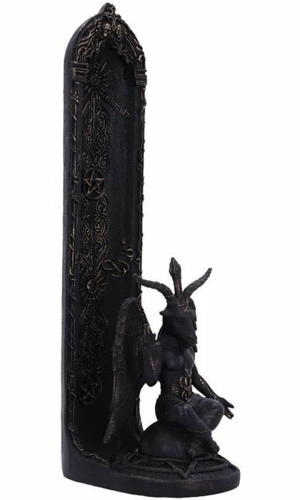 Resting in the centre of a pentagram, the globe of the earth acts as Baphomet’s seat. Sitting cross-legged on top of the world, Baphomet sits, symbolizing the sum total of the universe. The back of the burner is decorated in symbology with gold detailing, and is perfect for burning your favourite incense sticks. Worshipped by occultists from Jacques de Molay’s Templars to Alistair Crowley, Baphomet has long been a symbol of free-thinking heresy and forbidden knowledge. Cast in the finest resin before being expertly hand-painted, this Baphomet’s Essence Incense Burner is ideal for any gothic or horror lover.