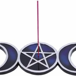 Shaped like the triple moon symbol, this piece lies on any flat surface and is made up of silver outlines of the waxing, full and waning moons. Inside the full moon there sits a pentagram with a central hole where you can place your favourite incense sticks. Representing the cycle of life, these pieces have been cast in the finest resin before being carefully hand-painted.