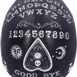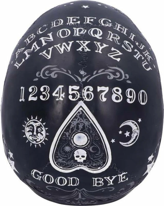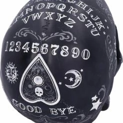 Spirit boards have long been one of the most powerful occult tools there is. Encompassing the black cranium is our own spirit board design, decorated with white baroque detailing on the handle base and rim. In the centre, the alphabet is marked out in an arc. The design also includes numbers 0 to 9 and the words YES and NO, as well as a warning to use with caution – the power of the spirit world is not something to take lightly. Cast in the finest resin before being painstakingly hand-painted, this skull will make the perfect tabletop accompaniment to any séance.