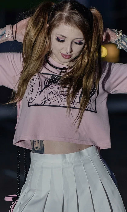 Senpai will definitely notice you in the Yes Daddy crop! Pair with a high waisted pleated skirt and knee high boots for a Kawaii look uWu LOVE!Â