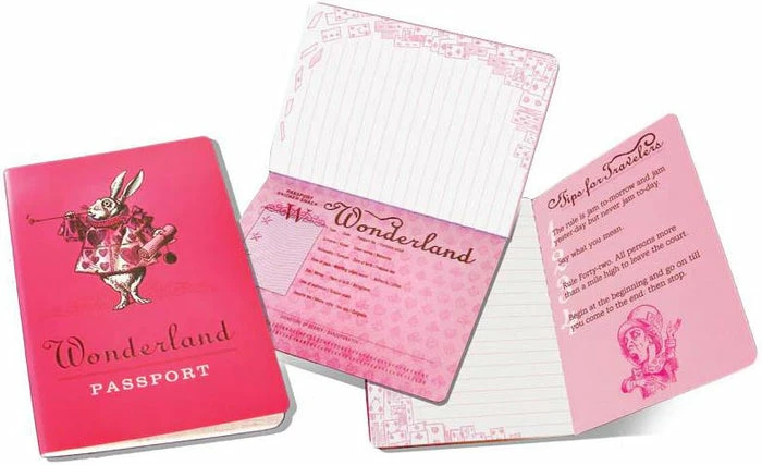 The Wonderland Passport looks and feels just like an official passport, but it’s actually a handy and attractive notebook. It features an image of the White Rabbit on the cover, and includes useful travel tips from Lewis Carroll’s imagination, such as “Tip #4: Begin at the beginning and go until you come to the end: then stop.”
