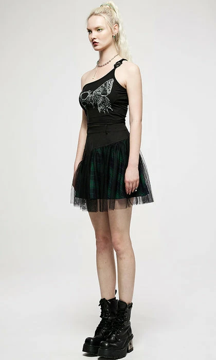 Be the girl they fall in love with at the rock show. Pair this eye catching skirt with a cropped band shirt and chunky boots for an edgy punk look.