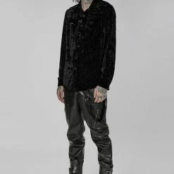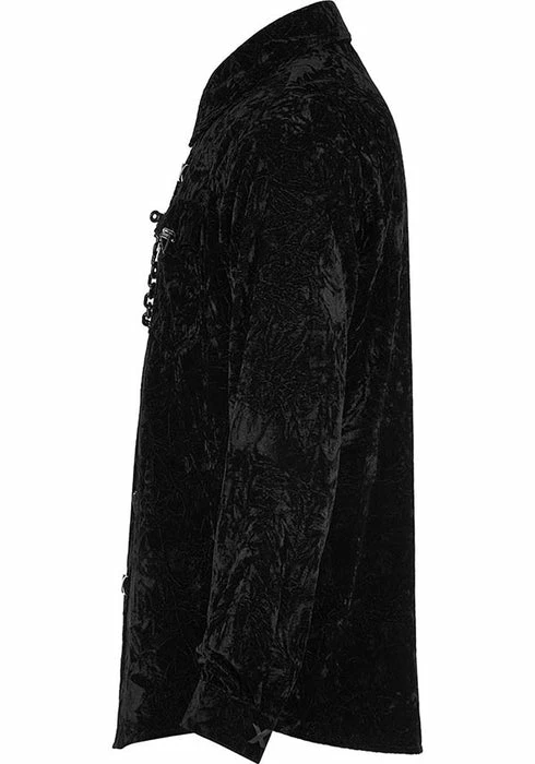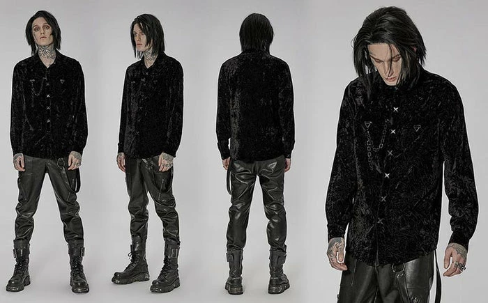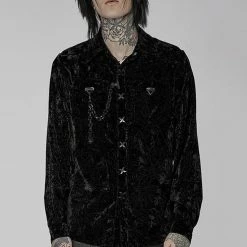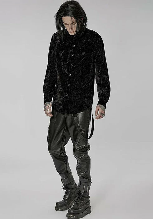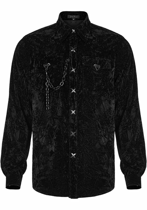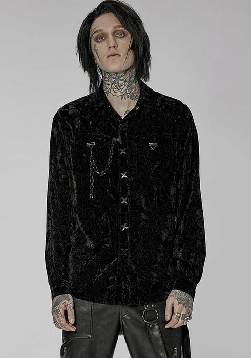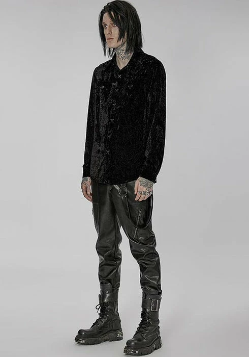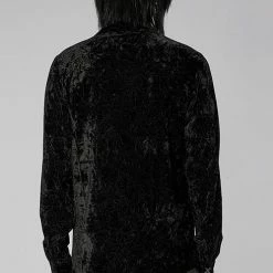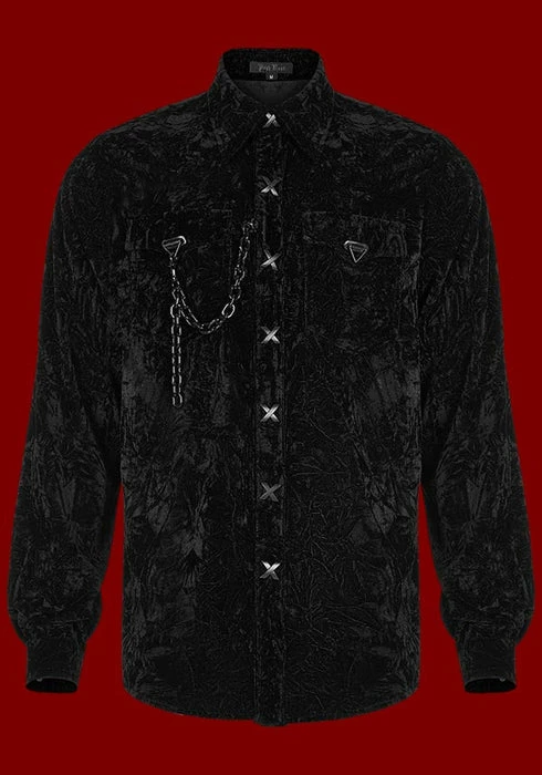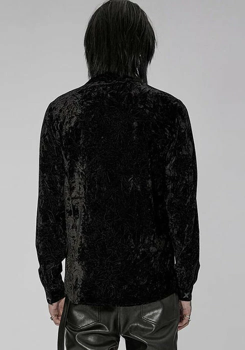 Emerge from the night in this sophisticated button-up shirt. The crushed and wrinkled effect adds a layer of charm. Pair this with some formal pants or some stomping boots for a fun outing!
