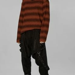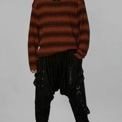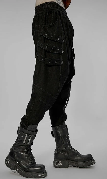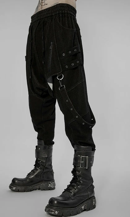 Stand out in style in these loose crotch style pants. Made of elastic knitted denim, these pants are sure to suit anything from lounging around the house to going off on a grand adventure!