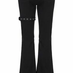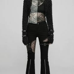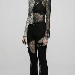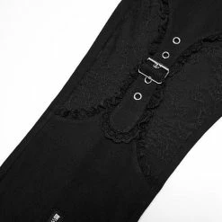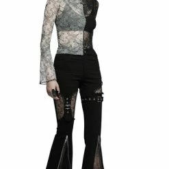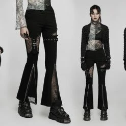 Wearing these pants will have you looking as hot as a Hydra! These sexy elastic pants feature beautiful floral lace panels with harness detailing on the legs and functional zippers down the legs that can be opened for a flared look or closed for a more fitted skinny jean look! Pair this sexy pair of pants with a mesh top and some boots!Â