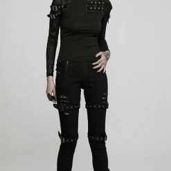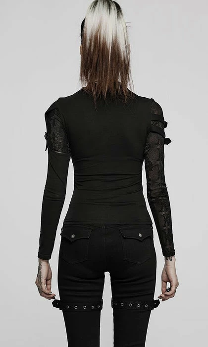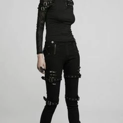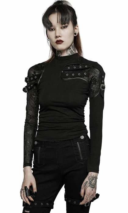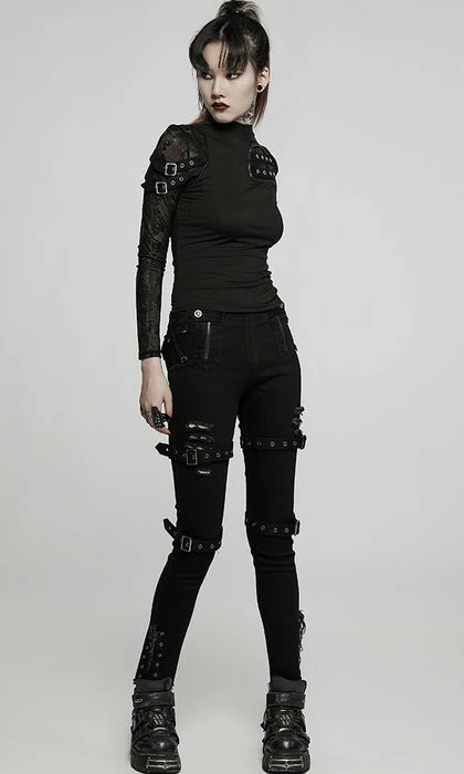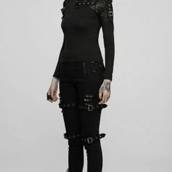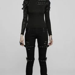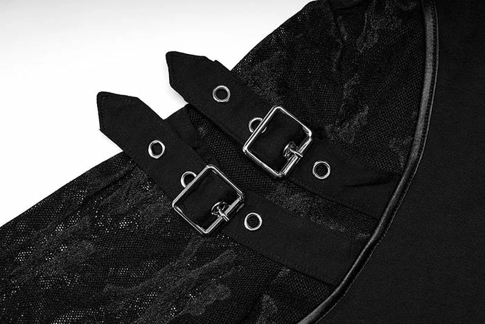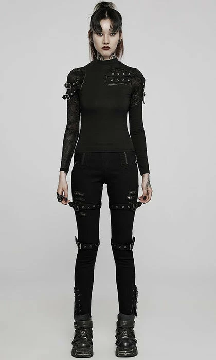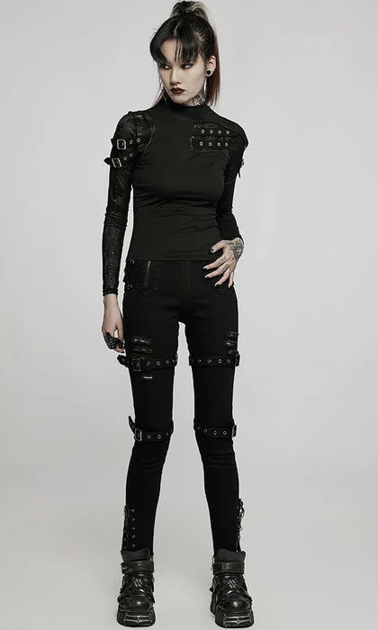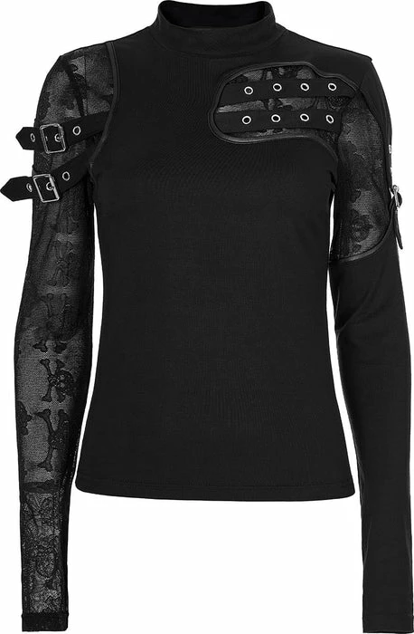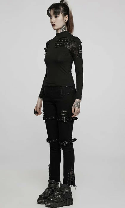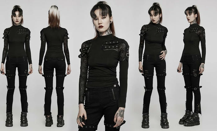 Feeling malignant! This stunning fitted turtleneck top is perfect for upgrading your old outfits! Featuring mesh cutouts with skulls and crossbones and harness straps, this top will be enough to turn heads! Pair this top with some bondage pants and some chunky boots for a sexy look!
