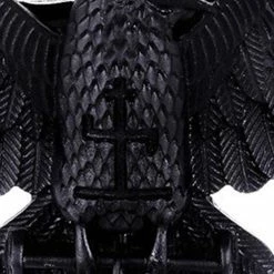This beautiful pendant of a black raven, wings outstretched with an engraved heeling ruin.