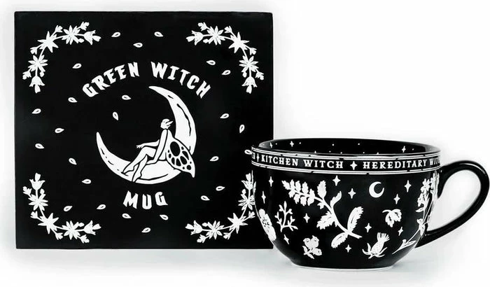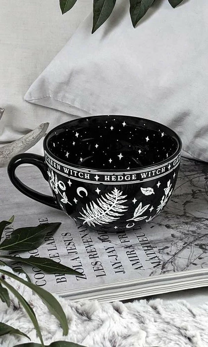 Feel closer to nature with every sip from the Green Witch Mug! A beautiful Black Porcelain Mug with a Gloss Finish, adorned with the fruits of the earth, and hiding a small forest faerie within to remind you that magic resides in everything.