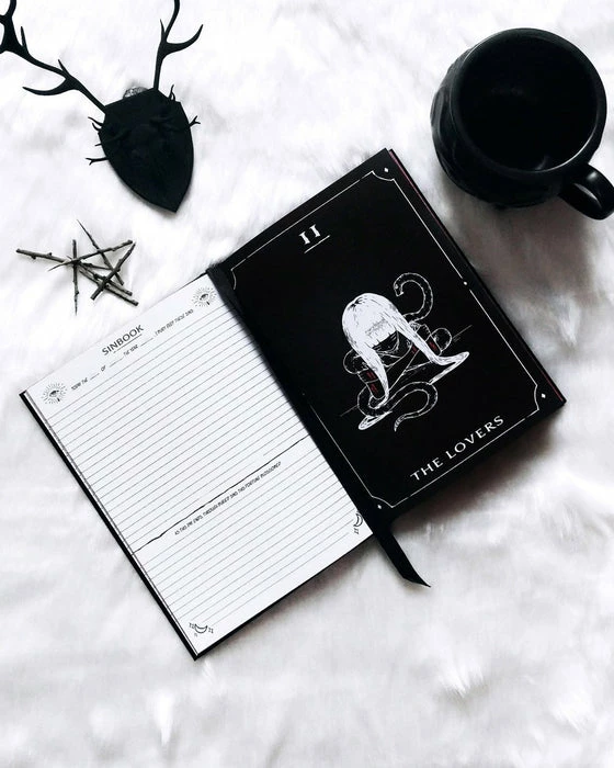An elegantly illustrated notebook and diary, conjured to hold your innermost Sins and worries.