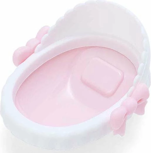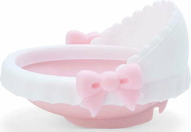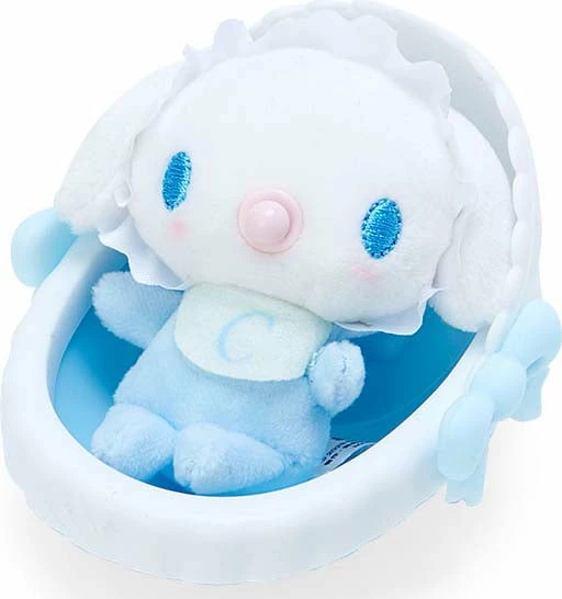 The baby Cinnamoroll swaying in the cradle looks happy! The bib with initials is also very cute ♪