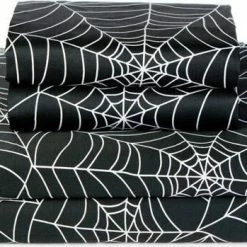 Spin a web of comfort in your bed with the Spider Web Bedding collection. The jet black sheets are crawling with bone white spider webs. Made of 100% cotton, they are woven to be as soft as spiders silk and the fit deeper mattresses!
