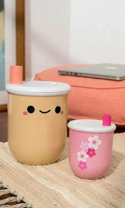 Say hello to the Giant Boba Lamp! Giant Boba is the cousin of Smoko’s beloved Pearl milk tea, but in larger form so there’s more to love. This lamp glows a soft-light in the dark. It also comes with a wall adaptor that has a USB option so you can either plug into your wall outlet or your computer. Giant Boba Lamp can also operate on 3x AA batteries if you want to take it with you on the go!Â