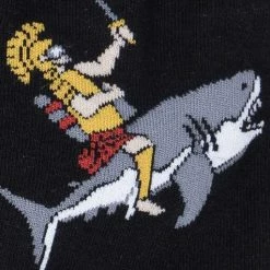 Are you not entertained?!? Well, how about after looking at these socks with a gladiator riding his faithful shark into battle? Picture him bravely fighting off enemy gladiators astride seahorses, dolphins, and cuttlefish? Maybe a horde of gladiators sails in atop a whale, causing the stadium crowd to roar. Who knows what other capers the gladiators on these socks could get into? Hopefully imagining that will keep you entertained!