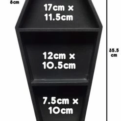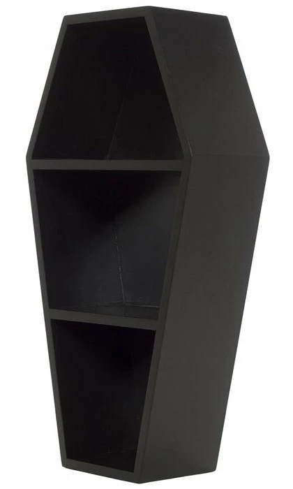 This isn’t your ordinary tchotchke shelf! The black Coffin Shelf is perfect for showcasing your most prized possessions!