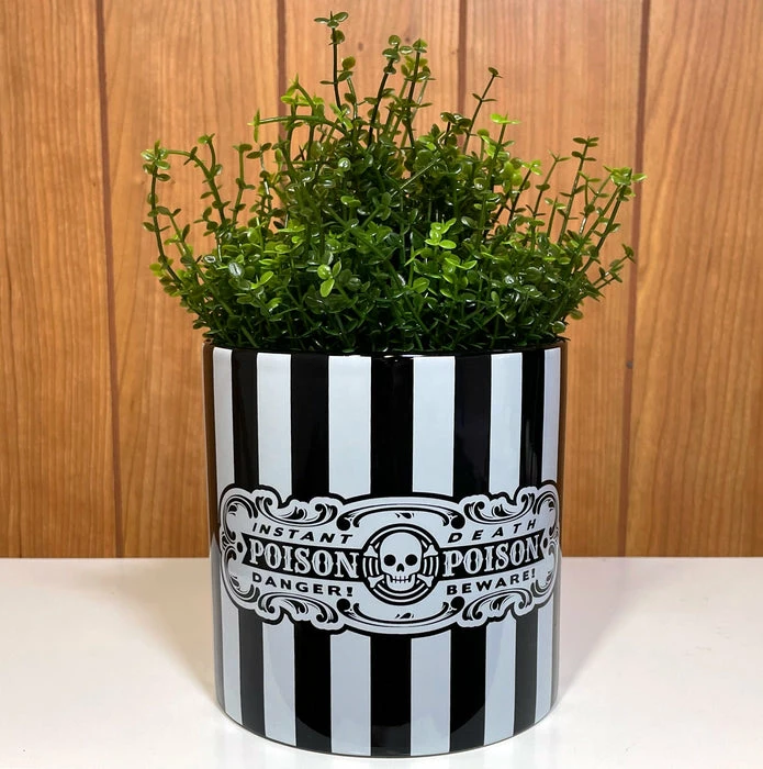 The new Sourpuss Poison Plant Container is perfect for keeping your deadly (and not-so-deadly) plants! It has a cylinder shape, striped “Poison” artwork and is 5″ wide and 5″ tall. You could also use it to stash so many other things – pens, paintbrushes, utensils – the possibilities are endless!