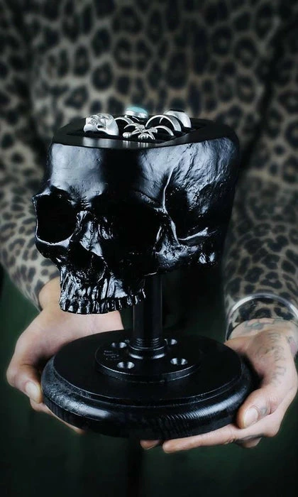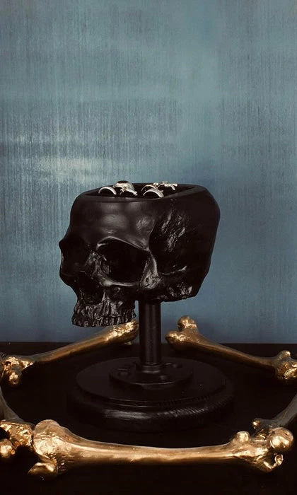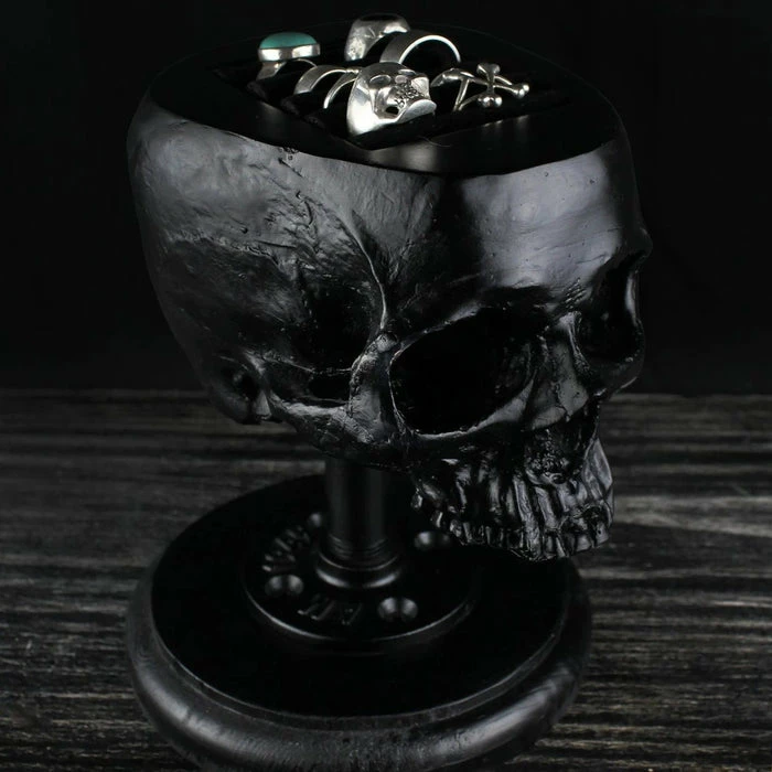 Need a placeย to hold your precious ring collection? How else would you display a stunning ring collection; other than in the head of a human skull.