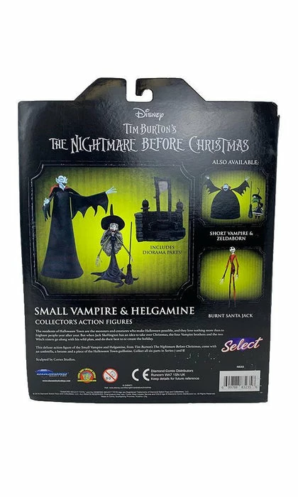 Burnt Santa Jack, Small Vampire with Tall Witch, and Short Vampire with Short Witch each come with pieces to build the Halloween Town guillotine environment.