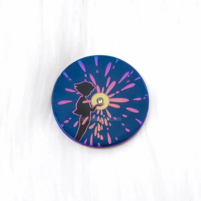 Please note that each rainbow enamel pin has a different color shine that can range from purple, to pink blue and green. The color of the plating may not match the examples. All pins will be distributed randomly and customers will not be able to request a certain color.
