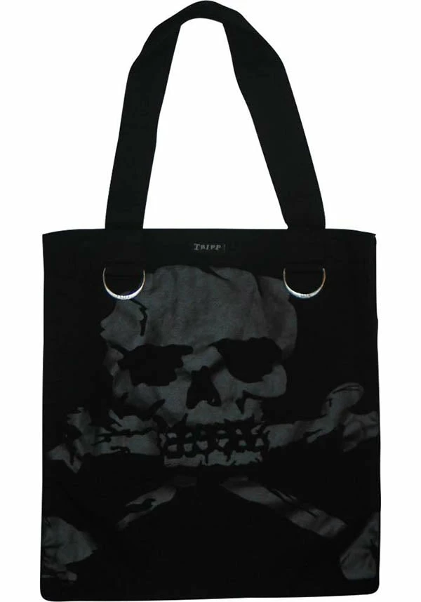 Tote around your favourite things in this oversize canvas bag! This baby has a huge skull printed on it & d-rings where the straps connect to the bag.