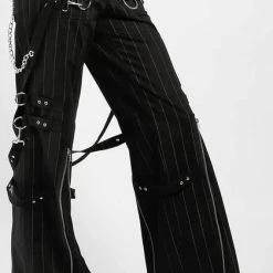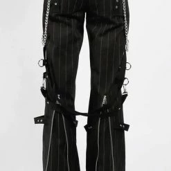 Accept no imitations! From the originator of all things DarkStreet, these black stripe pants can unzip down the center of the leg to flare out. They feature removable chains, D-rings, and deep pockets.