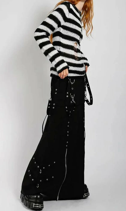 No pants, no problem! This versatile skirt is the ultimate must for any goth wardrobe. Wear it long, wear it short, the possibilities are endless!Â