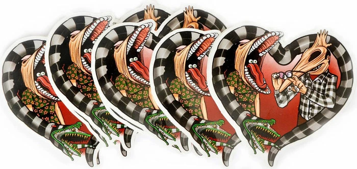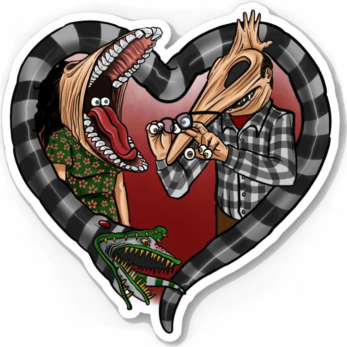 Show your love for Beetlejuice with the Adam and Barbara sticker. Perfect for decorating any flat surface!