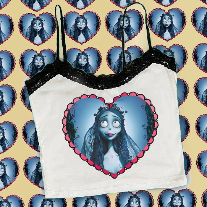 A cute take on Corpse Bride, this soft and lightweight cropped lace top is stretchy with adjustable straps will make you look, and feel awesome! Pair this with ripped jeans and combat boots for a super cute, casual look.
