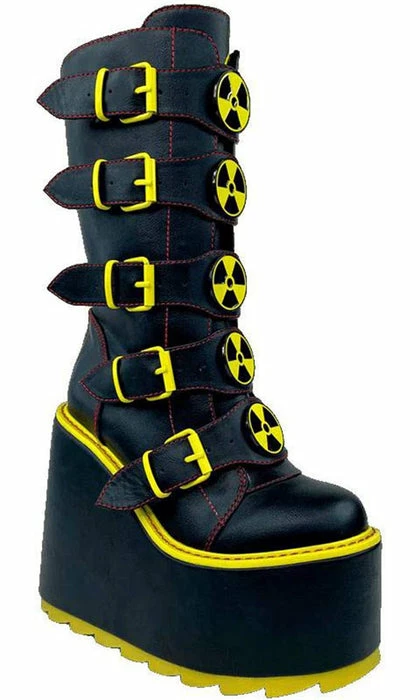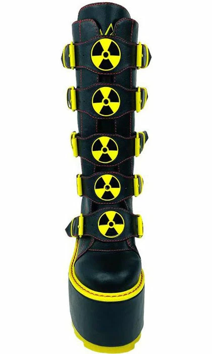 Make any outfit look dangerous with the Dune Biohazard Platform Boots! These daring statement boots are the ultimate must haves for your goth wardrobe!